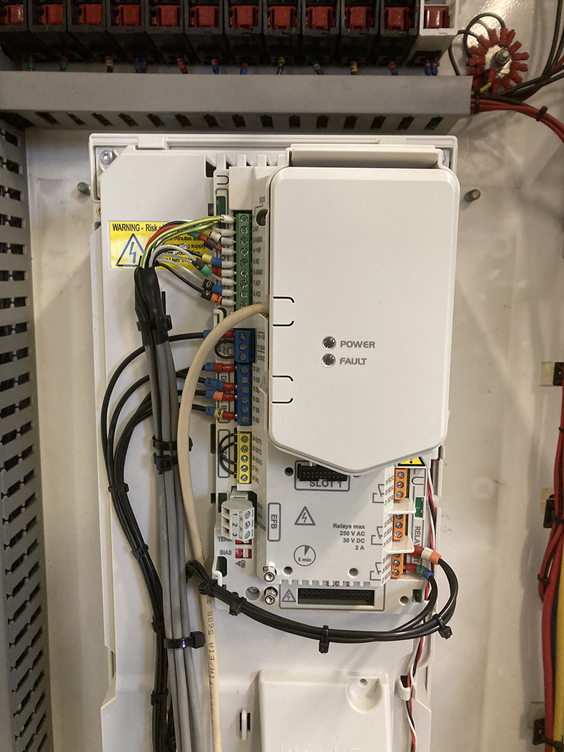 Once the new ABB ACH580 was successfully fitted and in place, our engineer had to make several control panel modifications as the control wiring was configured with the previous drive. Our engineer had anticipated some delays in the configuration as the previous drive was different. Despite this, the settings were successfully copied across from the previous VSD. In addition to the replacement drive, some upgrades to the front of the panel were also carried out. A set of new ammeters and labels were supplied to tidy up the front panel.