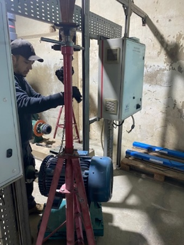 The Gibbons engineers took up the challenge of removing the 55Kw pump so it could be assessed at the Gibbons workshop. Upon arrival, the engineers were met by Colchester Zoo’s Estate Team engineer, who granted access to the plant room. Once inside, the team got to work by isolating the pump electrically and shutting off the water valves. Once the water valves had been shut off, the wet end fixing bolts were loosened off so the pump could be drained of any excess water.