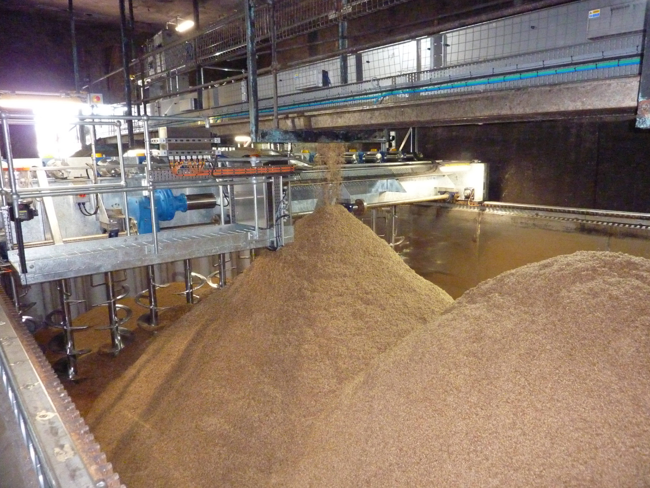 As the trolley progresses along the tank, the malted barley is continuously turned by the screws in order to allow the germination process to occur at the optimum rate. An elevator and conveyor system then removes the product ready for the kilning process.